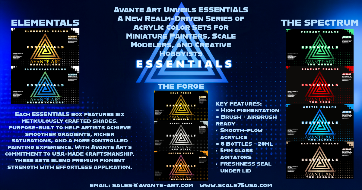 A New Era for Avante Art / Scale75USA With the launch of ESSENTIALS, Avante Art continues to expand its USA-made product lineup while redefining how hobbyists approach color and technique....